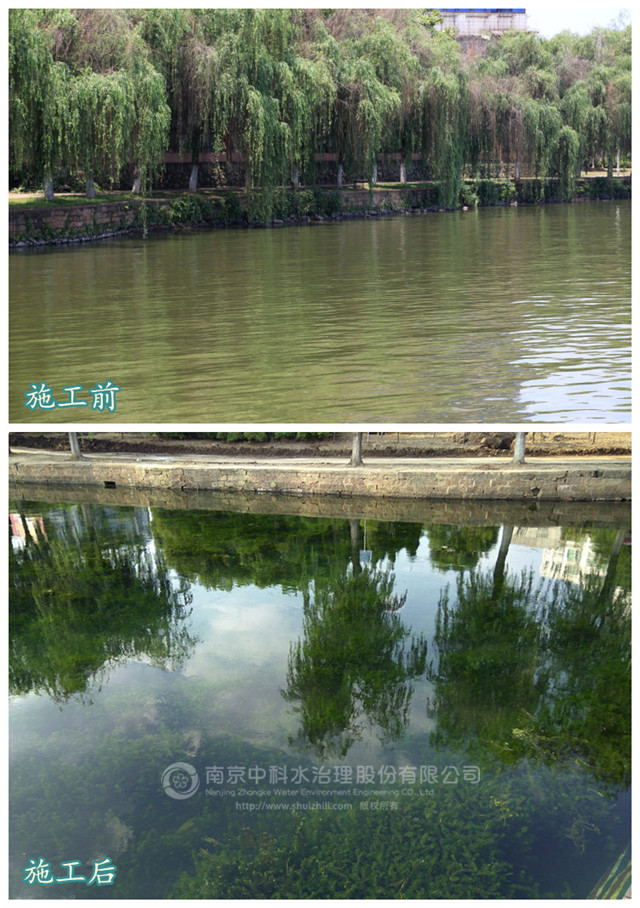洋瀾湖位于湖北鄂州市區東南方向,面積 583 萬平方米,其中水面約 288 萬平方米,陸地約 295 萬平方米,水深為 0.7-2.2 米。目前中科水治理正在施行清水型生態系統構建工程的區域包括官柳游園、桔園半島和法院南側的水域,經過近3個月的施工,目前施工區域治理項目取得實效,水質改善明顯,下一階段工作部署已相繼展開。