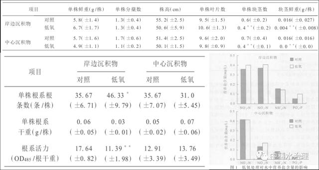 2、低氧對苦草根系的影響顯著,表現為根須變細且數量增加,根系活力明顯下降。
