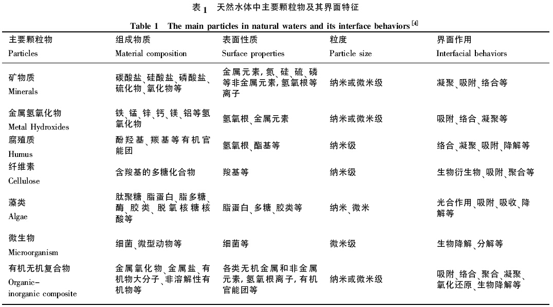 科學家等對天然水體中主要顆粒物及其界面特征進行了總結: